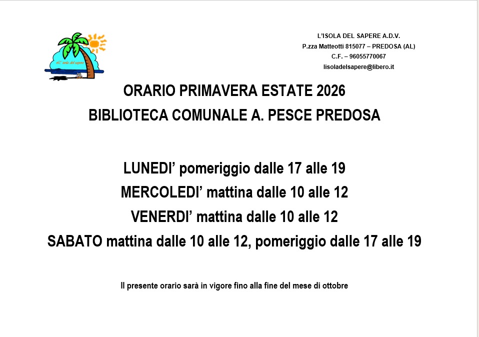 Alla riapertura, entrerà in vigore l'orario estivo allegato.